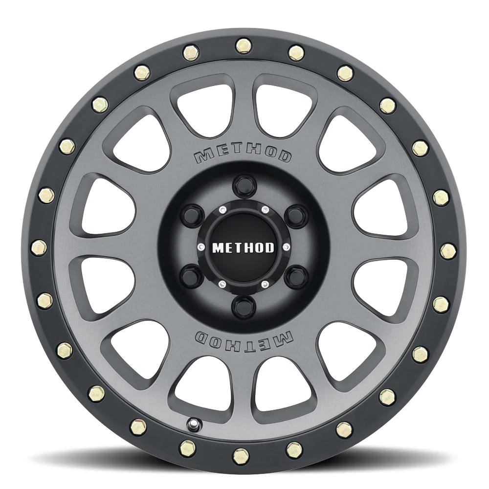 The 305-HD NV Wheel features an iconic 12 window design with a debossed Method logo on either side of the centre cap. The lip undercut simulates a true beadlock wheel and has replaceable lip bolts with optional colours available. It boasts a Heavy Duty (HD) load rating of 1651kgs - 2041 kgs. to handle your larger hauls.